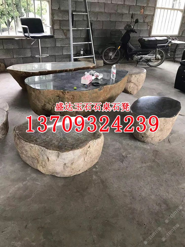 九龙壁玉石大理石石凳石桌 庭院石头桌子整块玉石