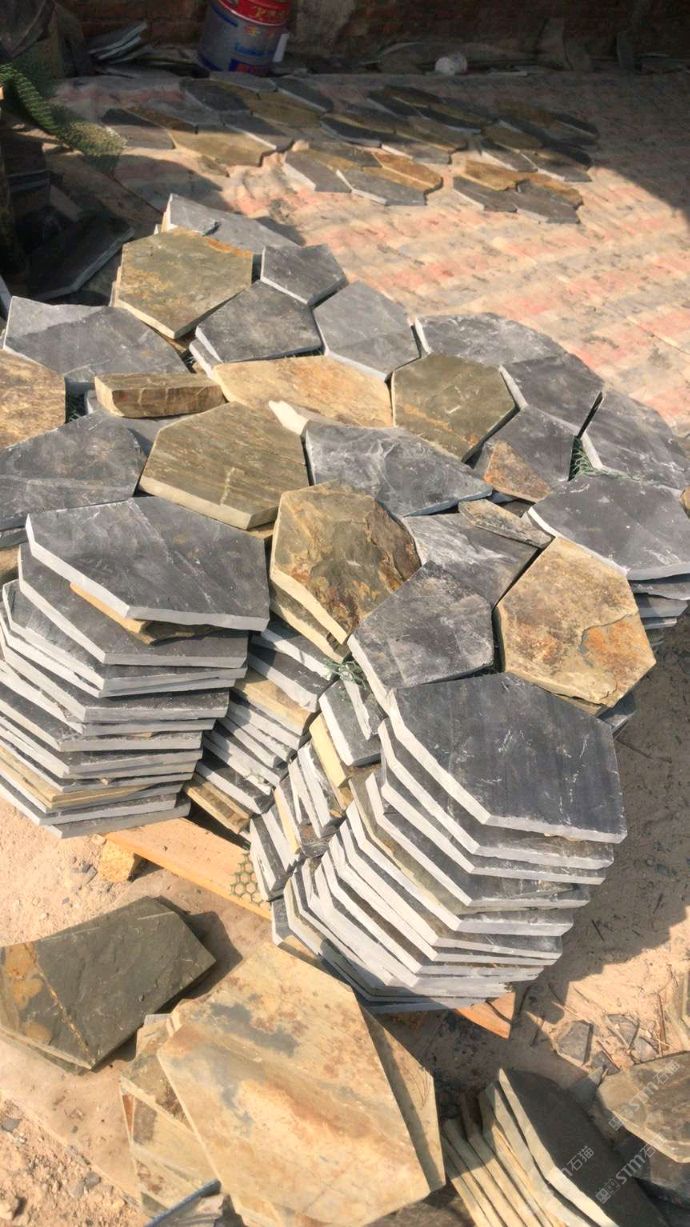 发布信息: 纯天然青石板(黑板),绿板,绣板大量供应中;规格板300*600、不规则乱形板碎拼、冰裂纹、蘑菇石、汀步石,瓦片等各种规格大小地铺及网贴都有现货,厚度可定制;一站式为您解决石材供应,快来电定购吧,电话/VX: 18017331699