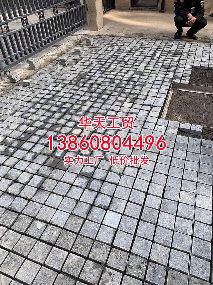 老矿芝麻黑石材火烧面方块石深灰色麻石小料石厂家