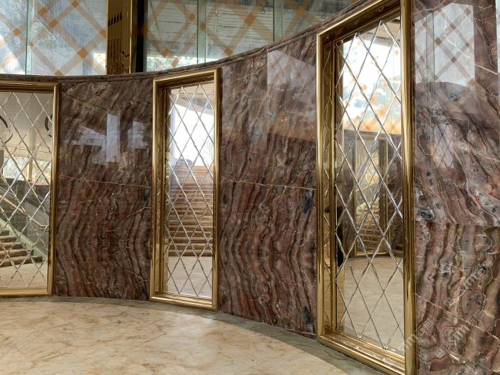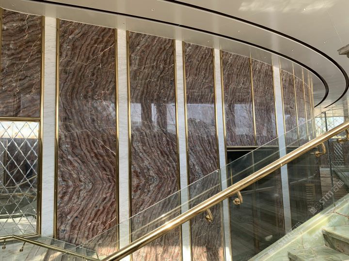 泰龙石材:矿山直销奥利红玉荒料,大板