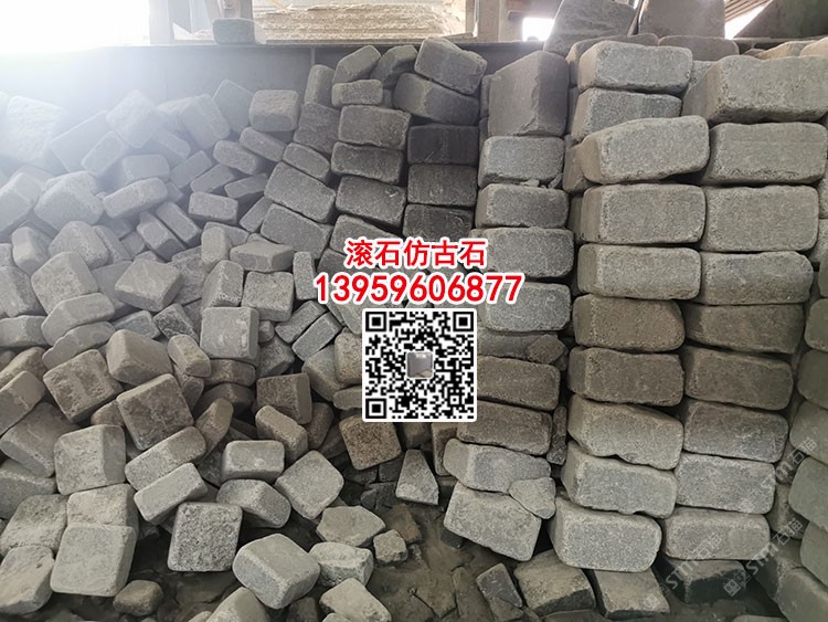 G654滚磨小方块新矿芝麻黑滚石园林铺路石黑色石材