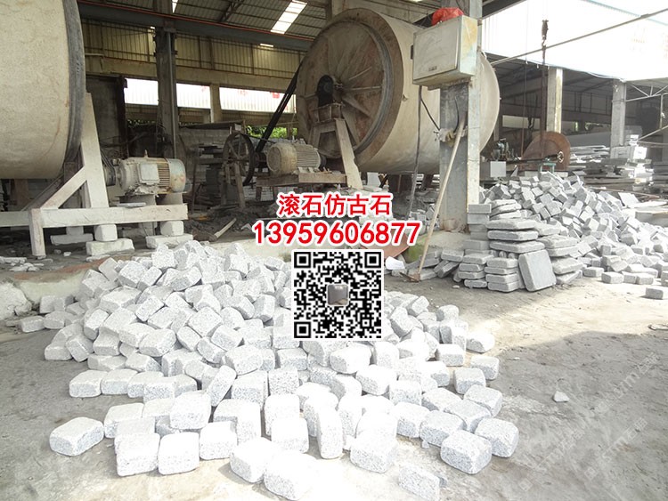 G655小方块铺路石芝麻白石材G623滚石价格弹石