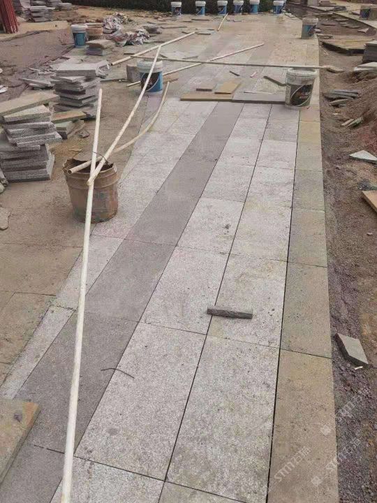 到现场确认芝麻黑 灰铺装效果!