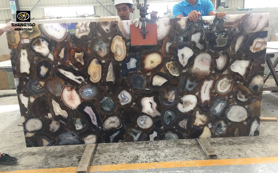 发布信息: 半宝石板材——玛瑙大板,常规尺寸1220*2440mm,支持定制尺寸,异型等工程需求。高端墙面装饰,台面,吧台。广泛应用于别墅、酒店、会所、酒吧、咖啡厅、专卖店、浴室喷泉、厨房、桌面等应用装饰。 升耀宝石专业生产虎眼石,玛瑙,水晶,木化石,景泰蓝,青金石,紫莹石,孔雀石,多红碧玉,红绿宝,拉长石,银线石,铁虎石,格兰云天,草化石,龟背石等欢迎联系订购