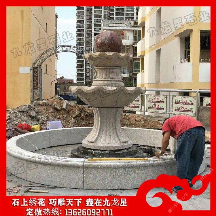 发布信息: 喷雾石材风水球 室外风水球喷泉造价——九龙星石业。 喷雾石材风水球是常见的风水物品,是人们的信仰所在。风水球通常为圆形状。通常有放在阳台栏杆上、围墙上、及喷泉上,给人们带来好运。大理石风水球造型比较多样,常用的为流水钵式风水球,及底托为圆盘形,此类风水球可单层风水球、双层风水球、三层风水球、多层风水球。除此之外还有方形风水球、莲花风水球、花型风水球等。