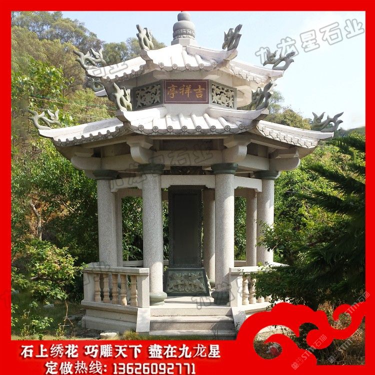 白麻六角亭子 户外石材石雕亭子雕刻厂家