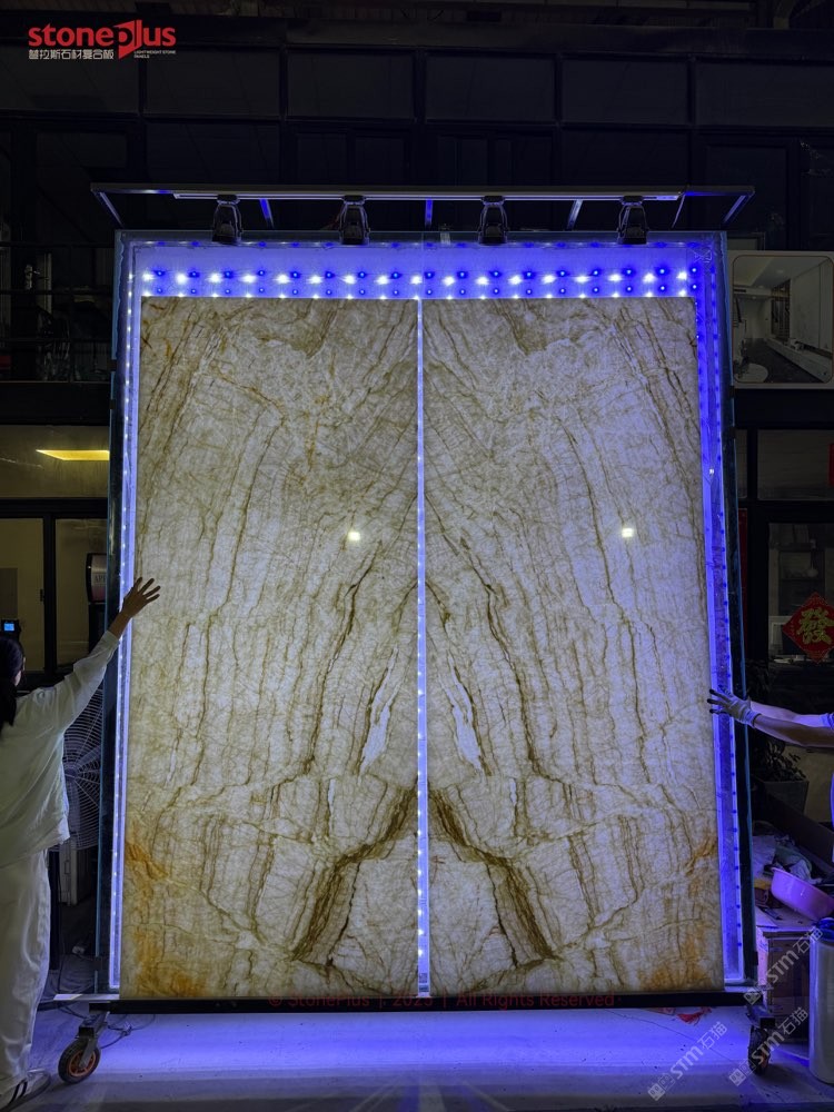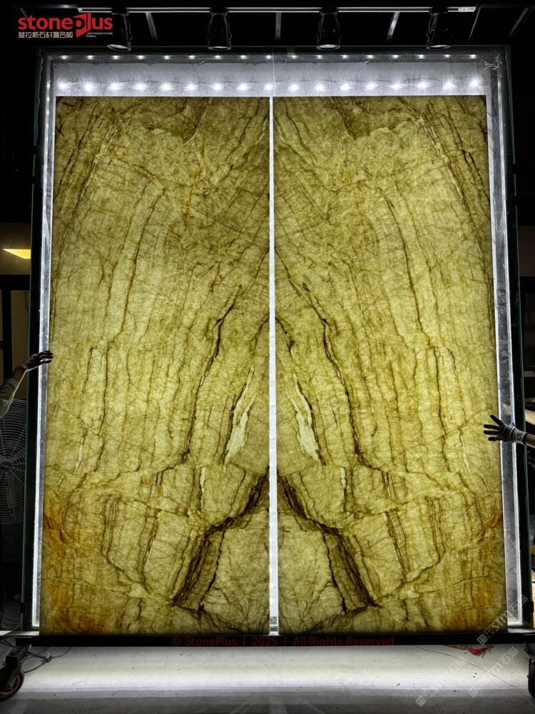 发布信息: 透光复合石材背景墙镜湖春晓 加工咨询 18060081353 普拉斯石材复合板StonePlus,专注各类石材复合工程板,石材复合板,石材复合夹胶玻璃,主要有复合铝蜂窝、透光塑料蜂窝、透光玻璃、瓷砖、花岗岩及PVC高分子底板,以及各类石材,如玉石,高档奢石,砂岩,石灰石,大理石,花岗岩等对剖,复合,定厚,欢迎来电沟通合作共赢!