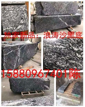 黑底浪涛沙荒料,毛板,工程板
