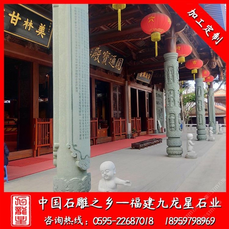 发布信息: 九龙星石业是石雕厂家,常年批发石雕、石雕圆柱、石雕华表柱、石雕罗马柱等等??钍蕉嘌⒓鄹窈侠?、工期快,欢迎咨询我们18959798969 寺庙石雕圆柱是我国自古便传承下来的一种观赏性很强的艺术品,而且有着石雕圆柱独特的作用。石雕圆柱以奢华、诚信、吉祥等寓意为代表,获得了许多单位和个人的需求,并广泛应用于单位公司、办公室装修、园林装饰以及家祠祠堂大殿的顶梁柱等等多个方面及作用。 在如今的景区家祠堂等地方石龙柱的应用仍然依然广泛。石柱子被广泛应用于单位公司的外部装饰以及祠堂大殿的顶梁柱而用,和景观设计中,为这些地方提供了一种宏大的氛围和艺术魅力。