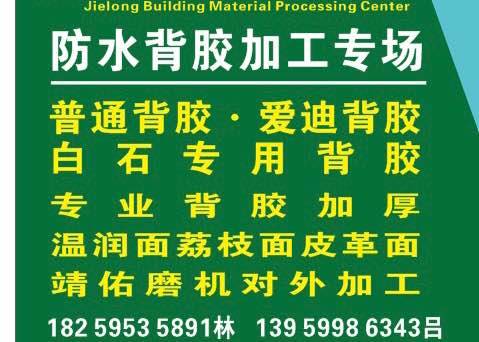 发布信息: 大型专业防水背胶铲网加工、白石专业背胶,大板普通背胶和大板背胶增加厚度。
