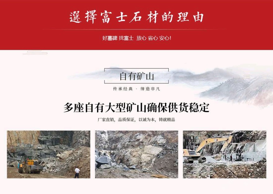 发布信息: 富士石材位于世界石雕之都——福建惠安,于1996年成立,主营墓碑生产、墓碑研发设计、公墓运营&殡仪馆运营、公墓陵园景观、规划设计等一条龙殡葬服务。公司自成立以来不断引进当今世界先进的生产设备及加工工艺,用专业的设备造优秀的产品。公司拥有一大批经验丰富的技术型管理人才,以严谨的管理提供高效的服务,并配以先进的电脑设计及现代化企业管理模式,秉承 “以客户为中心、以质量为根本,以市场为导向、以人文为基础”的经营理念,经过将近三十年的发展,逐步发展成为一家集墓碑加工生产、研发设计、陵园规划设计、公墓运营&殡仪馆运营为一体的公司。