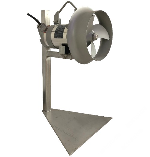 发布信息: 潜水搅拌机简介 潜水搅拌机又称潜水推进器,适用于污水处理厂的工艺流程中推进搅拌含有悬浮物的污水、稀泥浆、工业过程液体等,创建水流,加强搅拌功能,防止污泥沉淀,是市政和工业污水处理工艺流程上的重要设备。分为混合潜水搅拌机、低速潜水推进搅拌机。 潜水搅拌机用途: 适用与工业和城市污水处理厂曝气池和厌氧池,可用池中水循环及硝化、脱氮和除磷阶段创建水流等。 潜水搅拌机类型: 1.混合搅拌系列产品选用多极电机,采用直联式结构,能耗低,叶轮通过精铸或冲压成型,精度高,推力大,外型美观流畅,结构紧凑。 2.低速推流系列产品采用摆线针轮减速机或齿轮减速机,配备功率小,转速低,叶轮直径大,服务面积广。叶轮由聚胺脂材料和铝合金铸成(也有采用玻璃钢材质),强度高,耐腐蚀性强,除了具有搅拌的功能外还能外还兼有推流和创建水流的作用。 3.潜水搅拌机的电机绕组为F级绝缘,防护等级为IP68。在污水厂的曝气系统中配合使用,可使系统能耗降低,且充氧量明显提高,能有效的防止沉淀。根据工艺要求,直联式潜水搅拌可配用导流罩 潜水搅拌机适用范围: 混合搅拌系列潜水搅拌机适用于各种水处理工艺和工业流程需要保持固、液二相或固、液、气三相介质均匀混合反应的场所。 搅拌器在下列条件下应能正常连续运行: 1.介质温度不超过40°C; 2.介质的PH值在5—9之间; 3.液体密度不超过1150kg/m3; 4.长期潜水运行,潜水一般不超过20m。 潜水搅拌机特点: 结构紧凑、安装方便、操作简单、易于维修、配套电机功率小、无噪音,