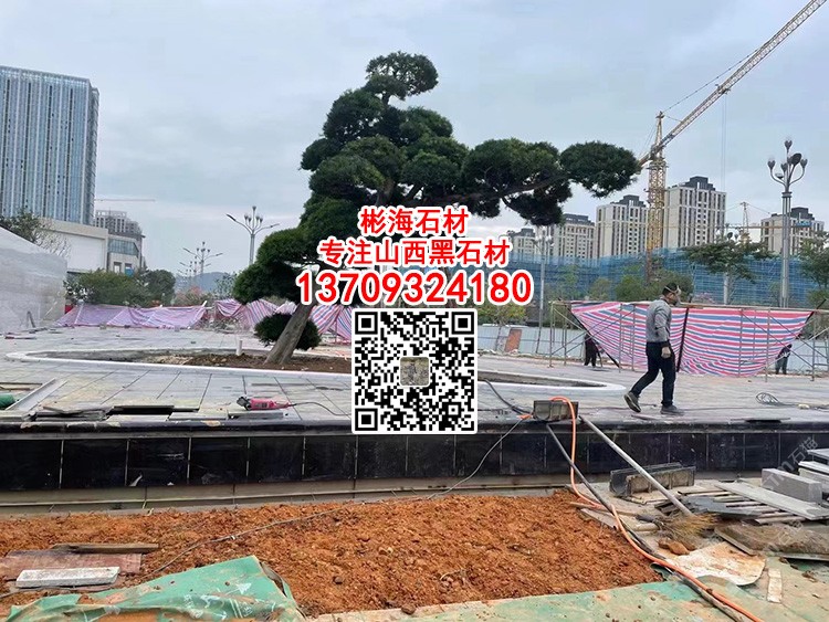 印度黑金沙广场喷泉水池水景工程黑金砂石材水景景观石