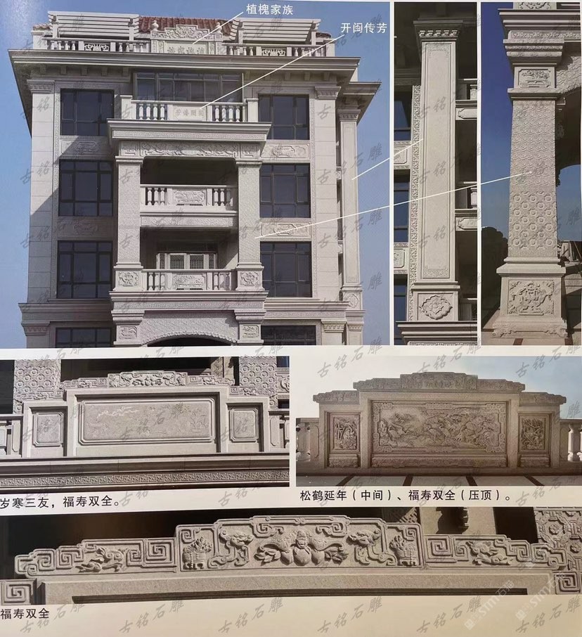 雕刻石雕别墅石材装饰栏杆线沿入户门窗户露台观景亭