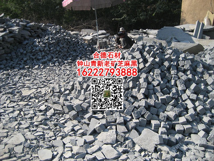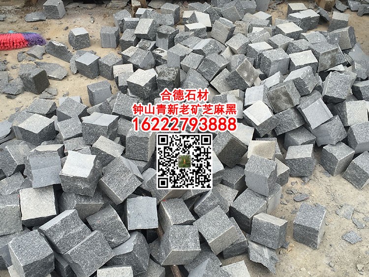 芝麻黑自然面小方块马蹄石弹石G654园林广场地铺石