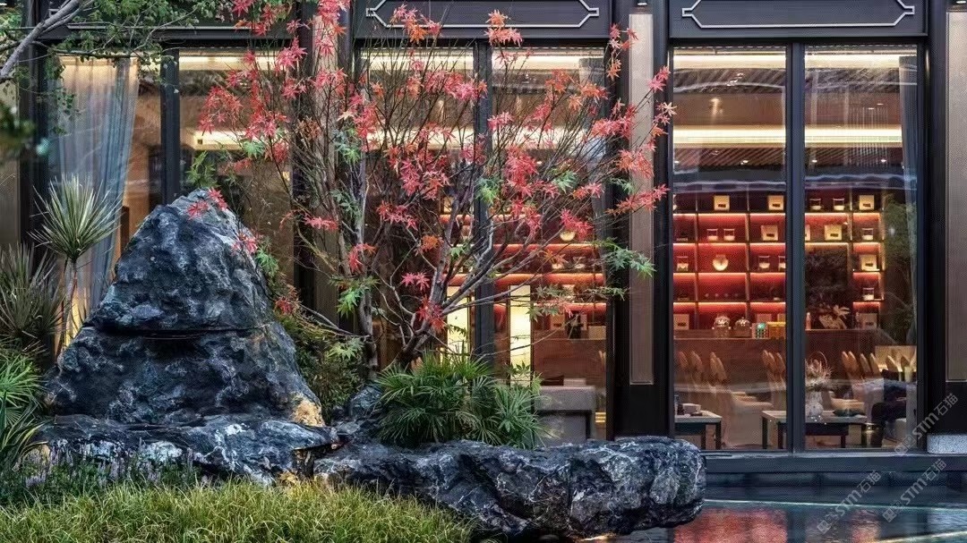 发布信息: 黑山石置石应用,中式园林景观,永恒黑色,典雅,矿山直销,价格美丽