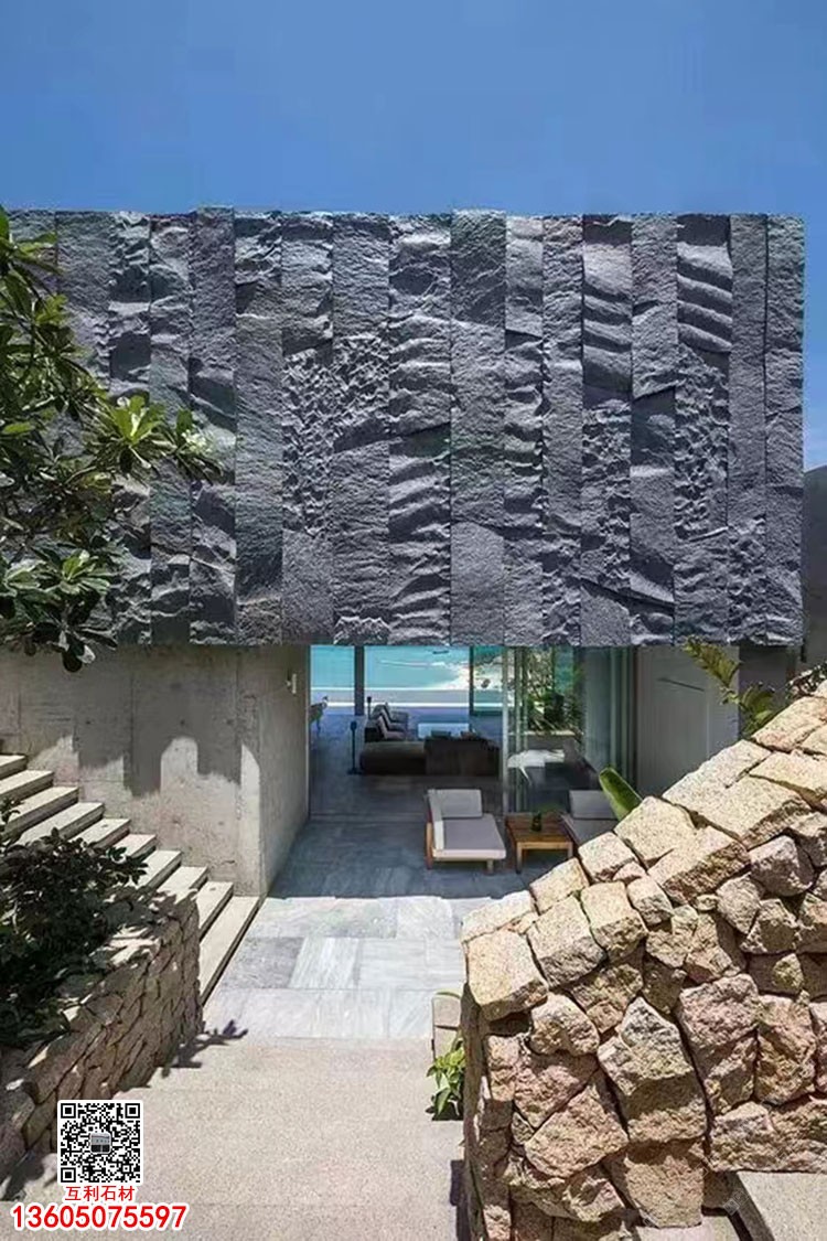 芝麻黑G654石材自然面文化石背景墙别墅外墙墙砖石