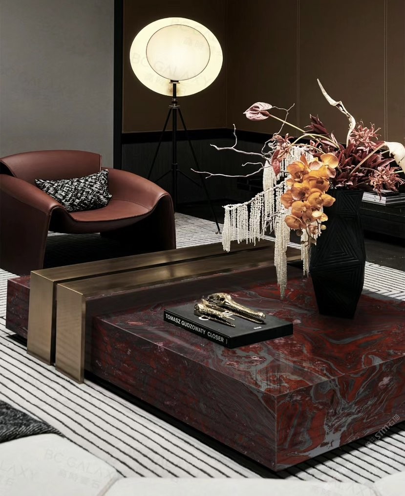 发布信息: 品名:铁红 Iron Red 产地:意大利 硬度:坚硬 含铁量极高 .天然石英石 运用:背景墙?电视台面?踏步?地面 ? 以金属灰纹理为载体,以红色为主色调,代表了生命、血、热情和爱。