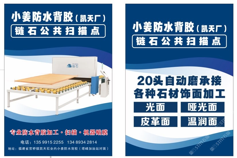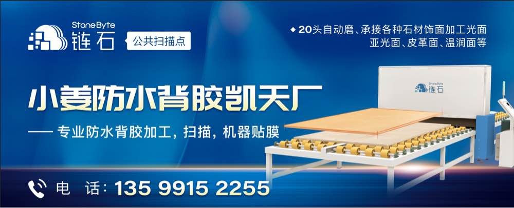 发布信息: 大理石防水背胶加工,链石智能扫描,机器贴膜,超大场地满足客户各种需求