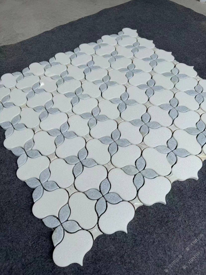 高品质水晶白花型水刀马赛克