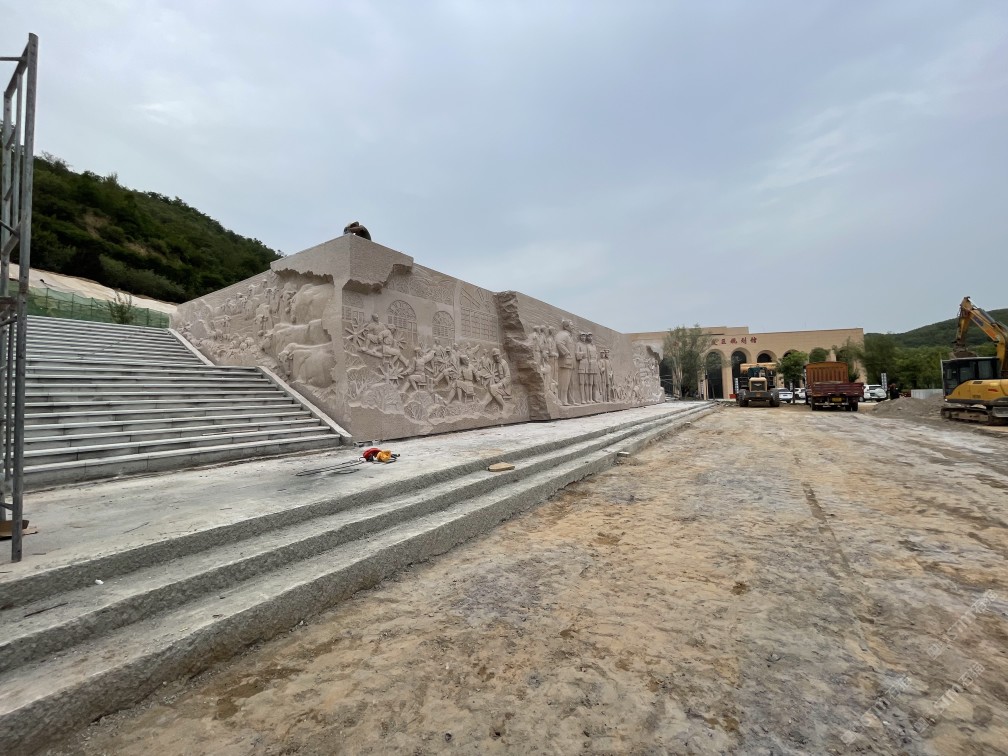 虾红花岗岩伟人雕塑坐落于陕西延安。