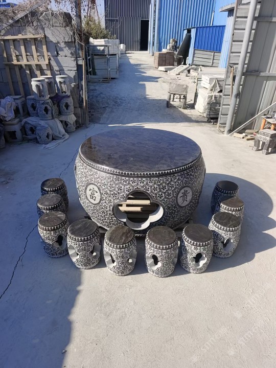 汉白玉佛像 青石圆桌
