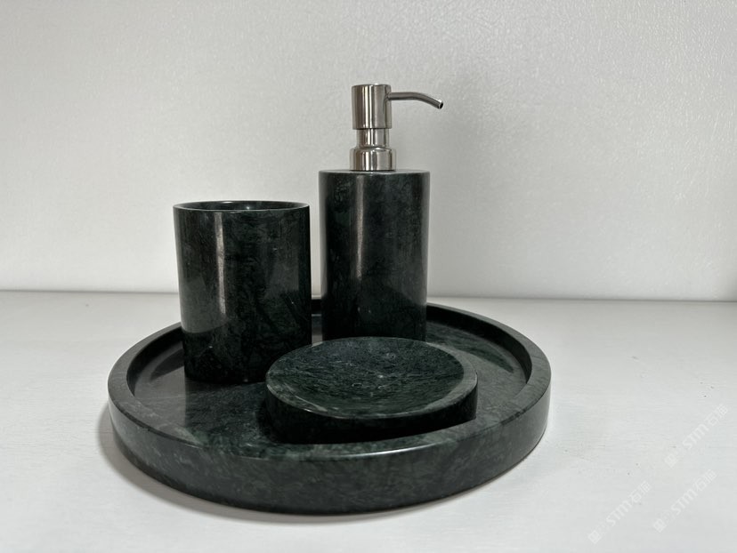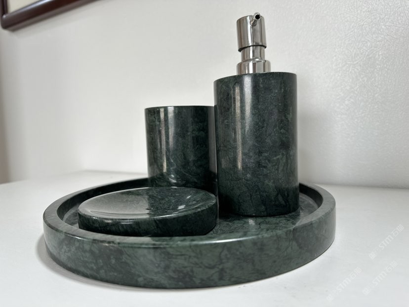大花绿石材卫浴四件套 石材香皂盒淋浴摆件托盘