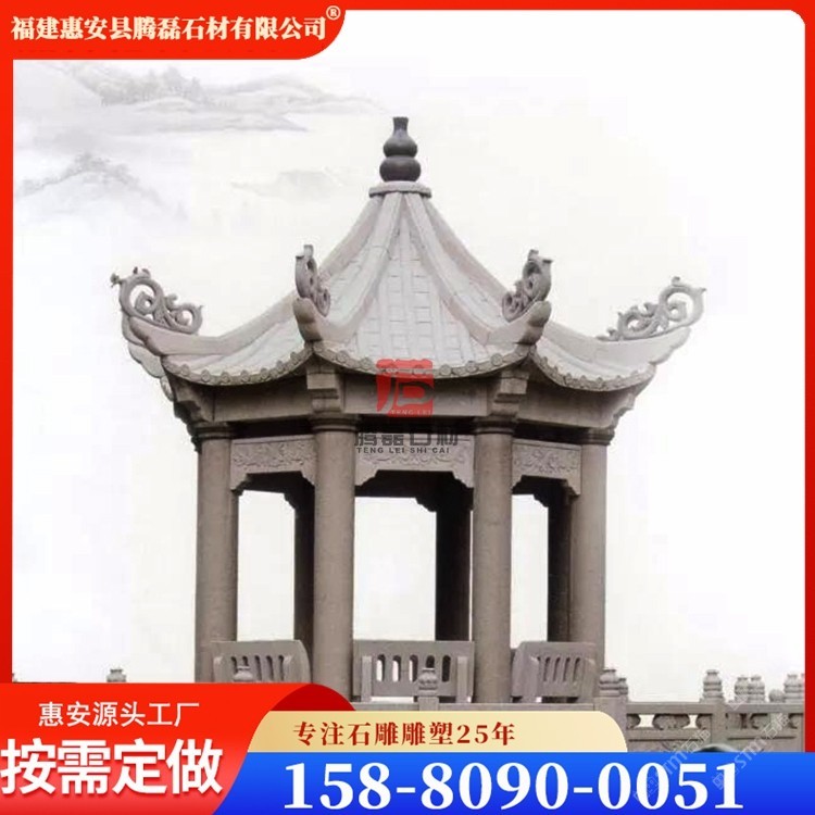 石雕亭子加工 石头亭子户外凉亭