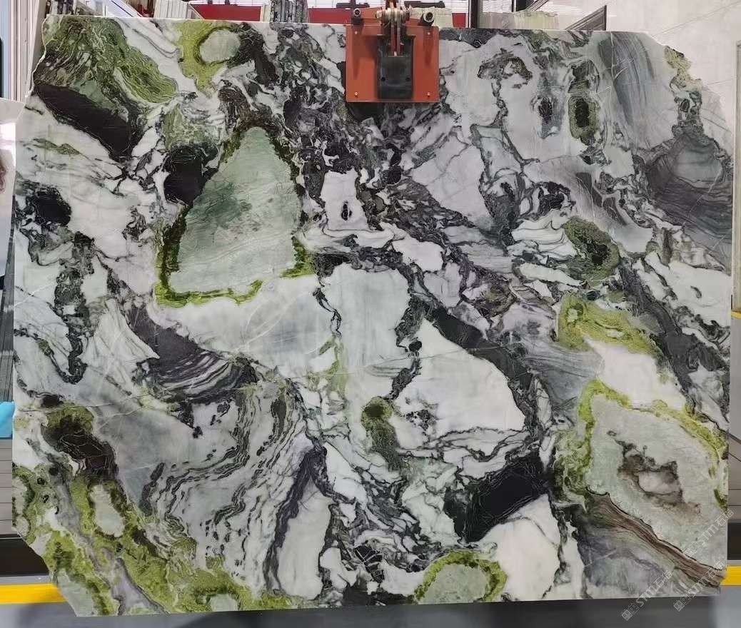 发布信息: 难得的冷翡翠原板1.8公分厚,非拼接,尺寸大概1600X1880MM#冷翡翠大理石#奢石