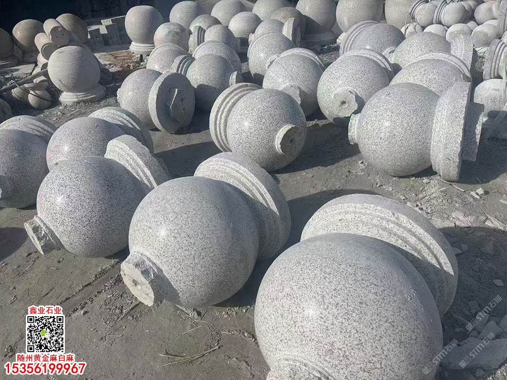 湖北白麻挡车石球随州白麻圆球路障石球石墩子黄金麻