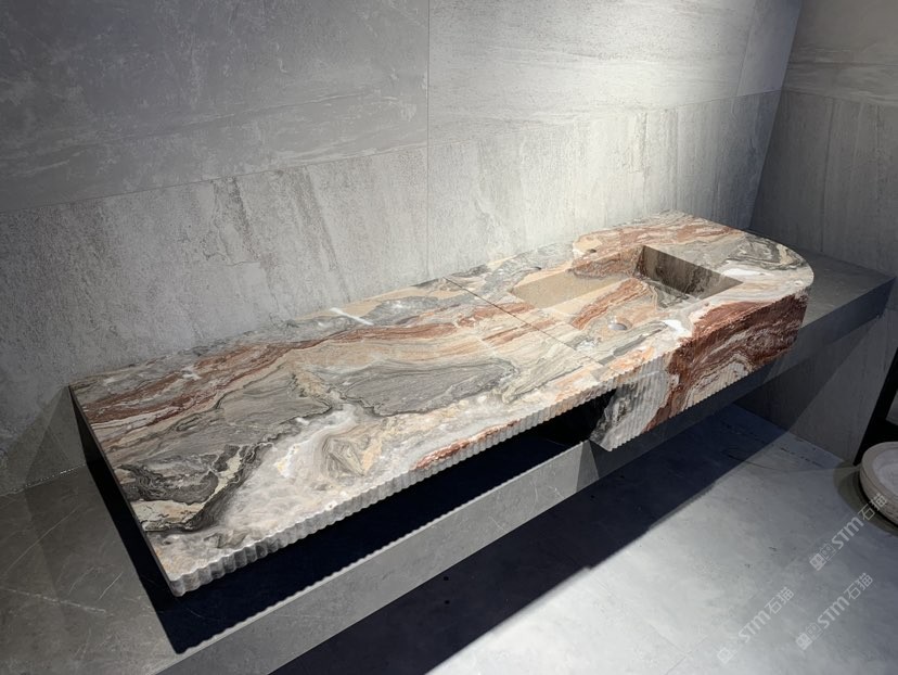芬迪红一体盆 石材洗手盆柱盆石材卫浴家居