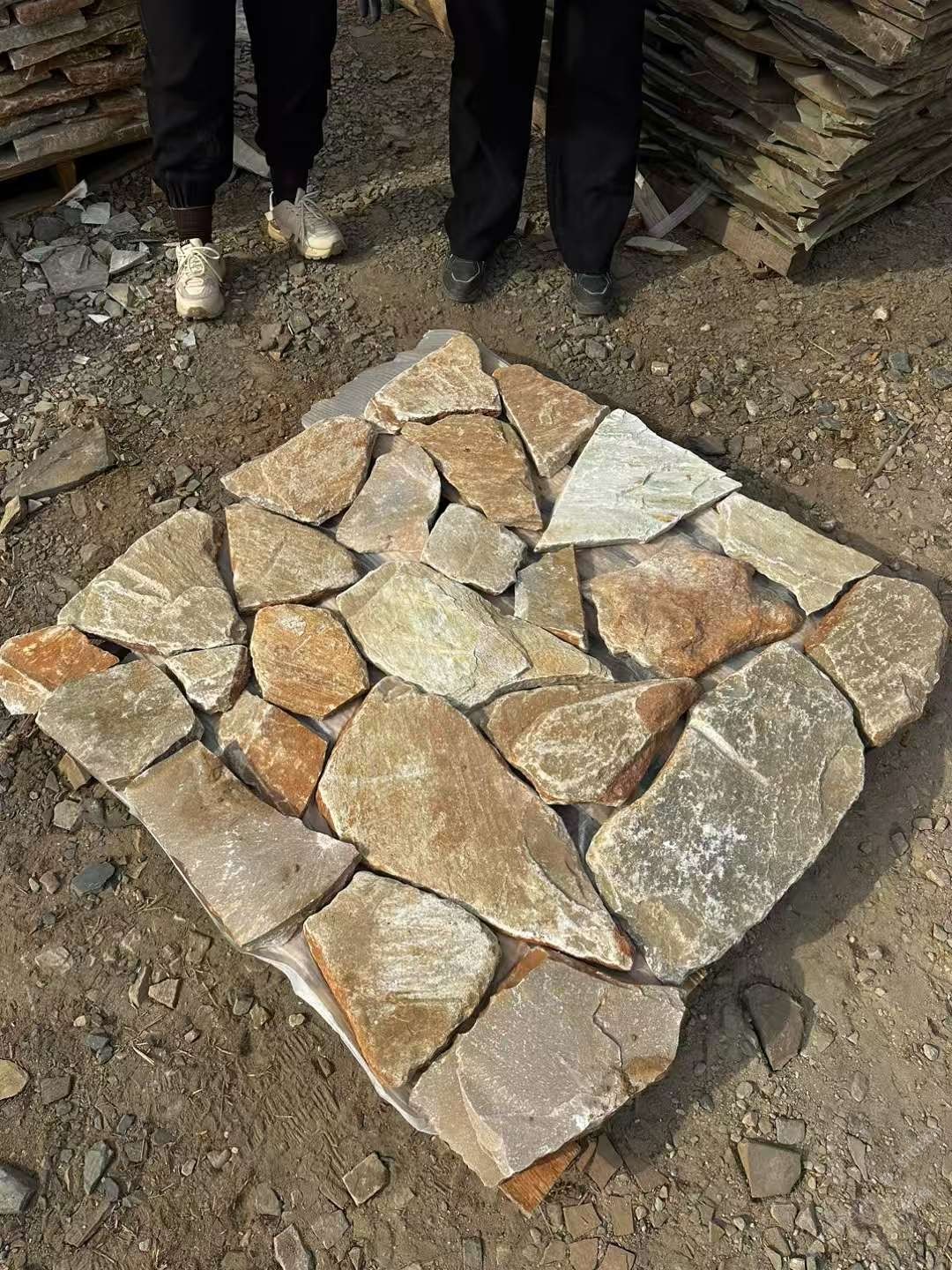 发布信息: 文化石碎拼厚度3公分左右。一面机切一面自然。适合公园 园林 别墅 庭院大面积使用
