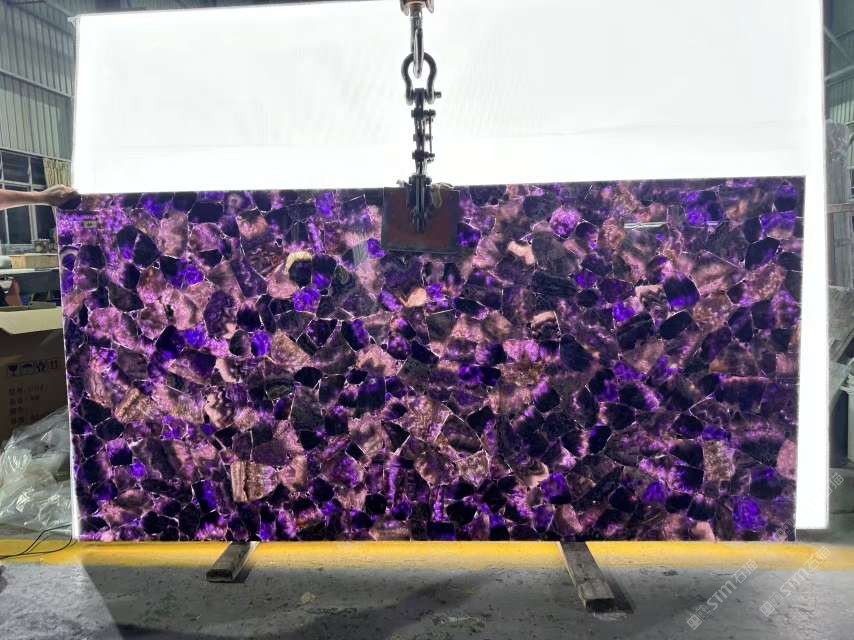 发布信息: 紫水晶宝石板,适用于背景墙,地面,家具台面,吧台岛台,洗手台等地方,支持定制尺寸,定制形状,高端定制