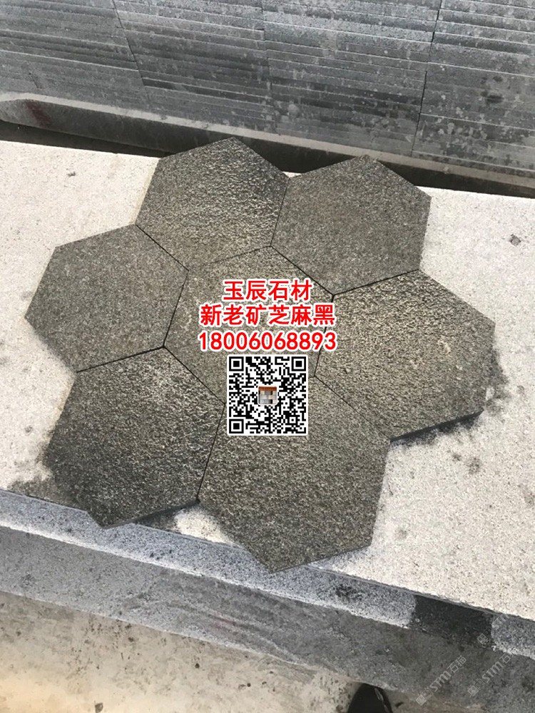 老矿芝麻黑六角砖冰裂纹乱拼碎拼石G654柬埔寨黑石