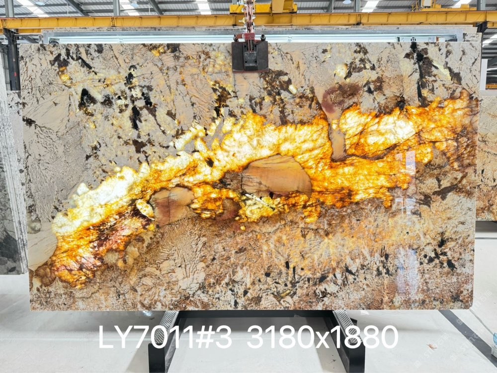 发布信息: 15259765016 ? 天然流淌的金丝纹路像把星河揉进了石头里 ?? 暖金色泽自带贵气滤镜 随手一拍都是高定质感 无论是家装背景墙还是餐桌台面 往那一站 直接封神??! “奢”得毫不费力 感直接拉满??