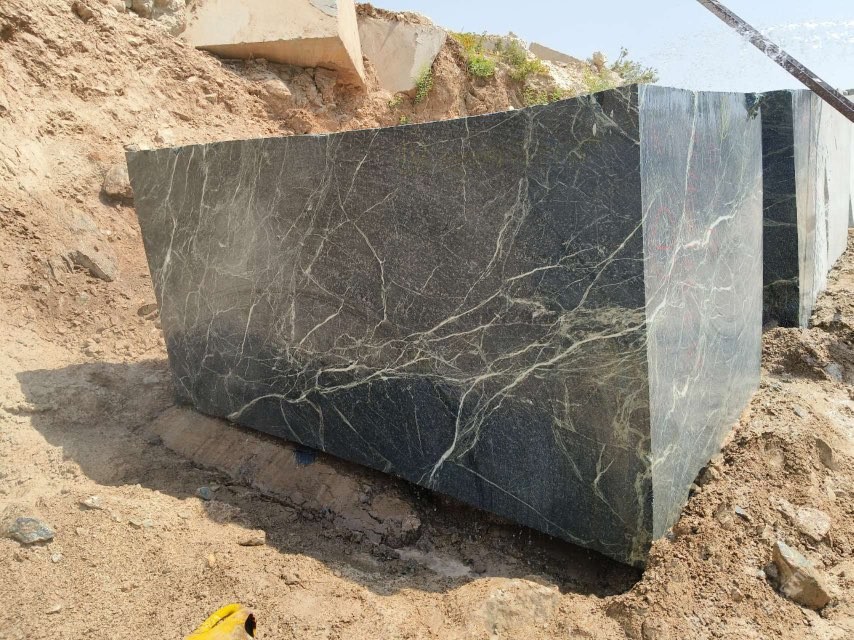 新到普拉达绿荒料,卸云浮国能石材总厂
