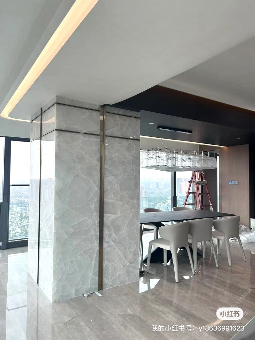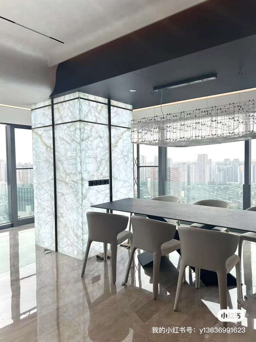 发布信息: 被这颜值惊艳到了! #冰河世纪#白水晶#白冰玉#天然玉石背景.现场美到失语,特别感谢神仙业主反馈分享与信任~超级满意~玉质感超绝 餐桌做餐桌,台面,吧台,无敌了!