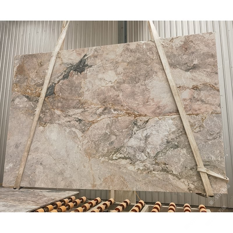 发布信息: 特征: 樱花(Sakura)是一款源自柬埔寨四季绿大理石矿山的天然大理石,其色泽柔美、纹理灵动。大板的整体底色带有明媚的灰紫粉色调,并点缀着若隐若现的青绿色块面和金色脉络,宛如春日花丛中悄然绽放的?;?,充满轻盈与浪漫能让空间在柔和的色调中呈现出一种细腻又的质 感。 应用: 墙面/地面/台面/异形/背景装饰/马赛克等。