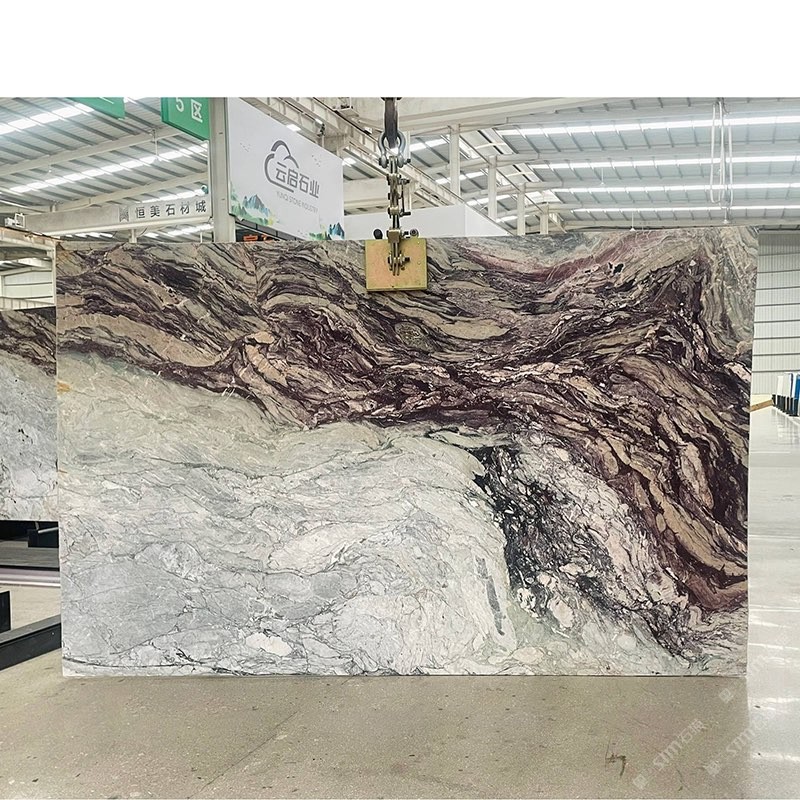 发布信息: 品名:梦幻紫彩Fantastic Violet 材质:大理石 Marble 产地:柬埔寨 Cambodia 特征:柔和的紫红、青灰与浅粉色交融成如水墨晕 染般的诗意画面,矿物结晶细腻而雅致,整体气场温润、灵动,适合东方美学空间或高端静谧场所。 应用:墙面/地面/台面/异形/背景装饰/马赛克等。
