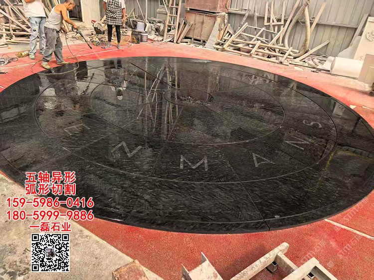 范思哲黑水池水景工程石材广场围圆宇宙黑铂金钻大理石