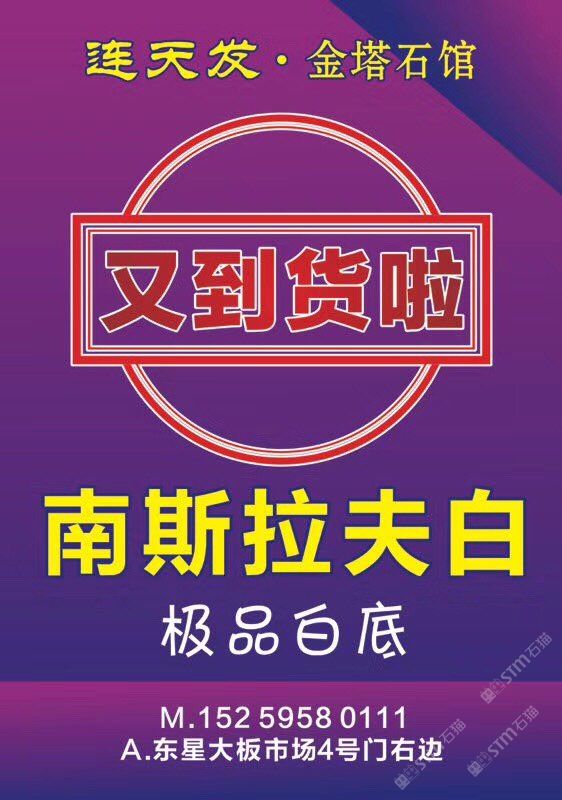 发布信息: 【连天发·金塔石馆】 ?? 南斯拉夫白 ??继续卸柜中?。?! 欲整票出售!或挑料定切!近期将有大量现货新鲜出炉![憨笑] 卸于:大盈工业区汇鹏厂 热线:18314672560 杨