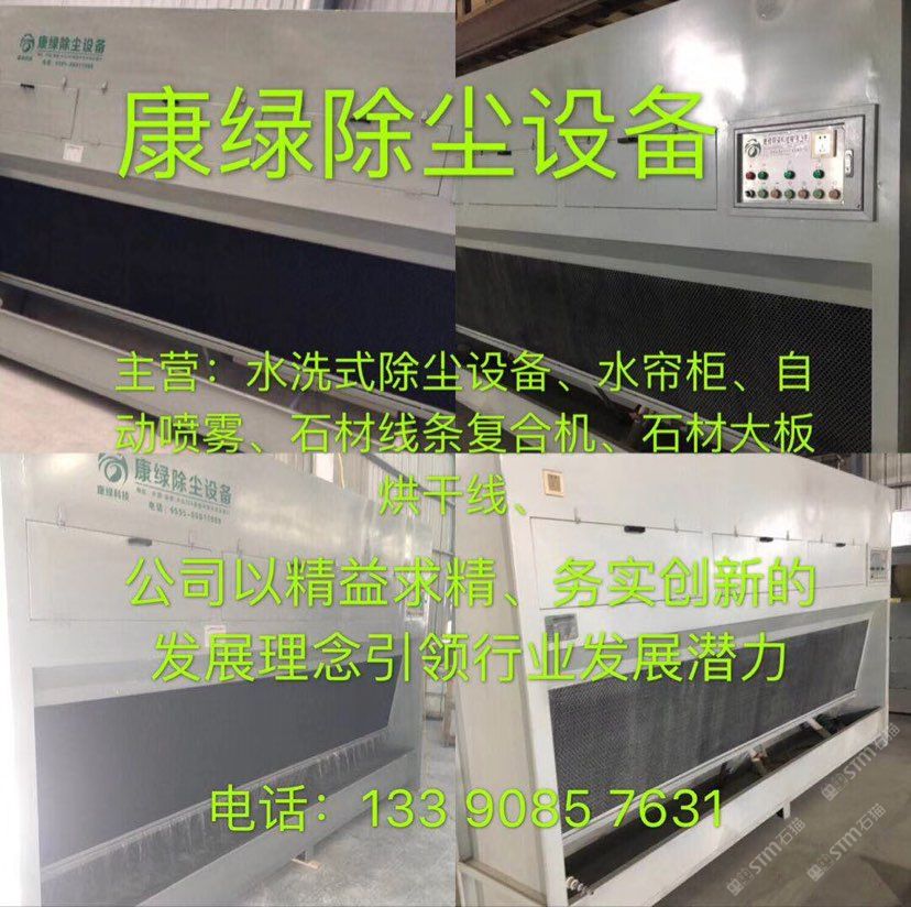 发布信息: 康绿环保科技有限公司:水洗式除尘设备,水帘柜,自动喷雾,石材线条复合机,石材大板烘干线,联系电话:18150567739,微信同步。