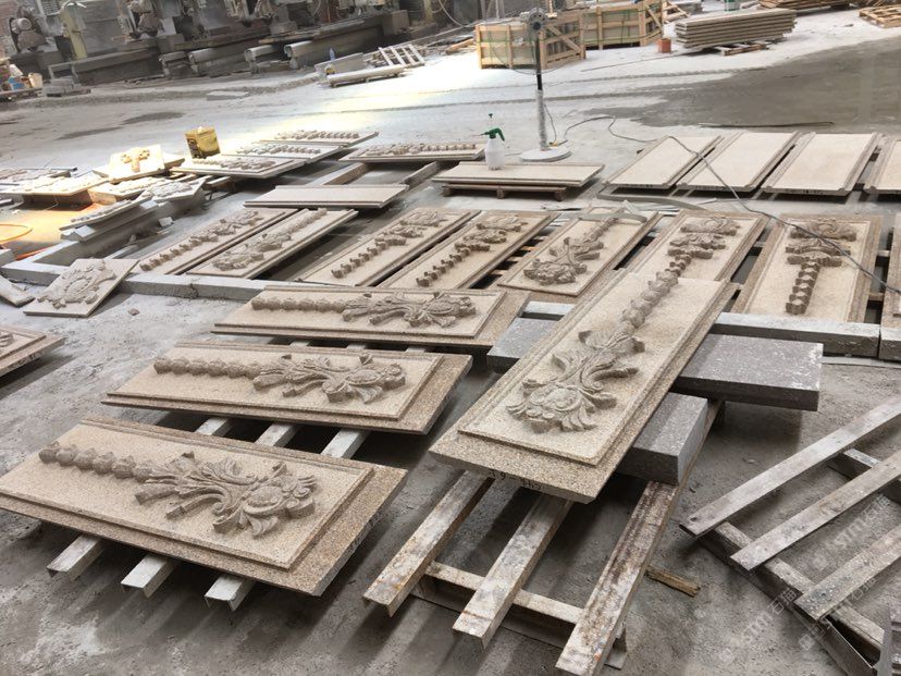 绿城异形-别墅线条、雕花、浮雕异形、黄锈石、虾红