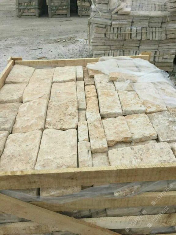 罗曼米黄莱姆石:罗马拼图,自然面墙石,冰裂纹,均有现货,出货快,欢迎联系18837750700