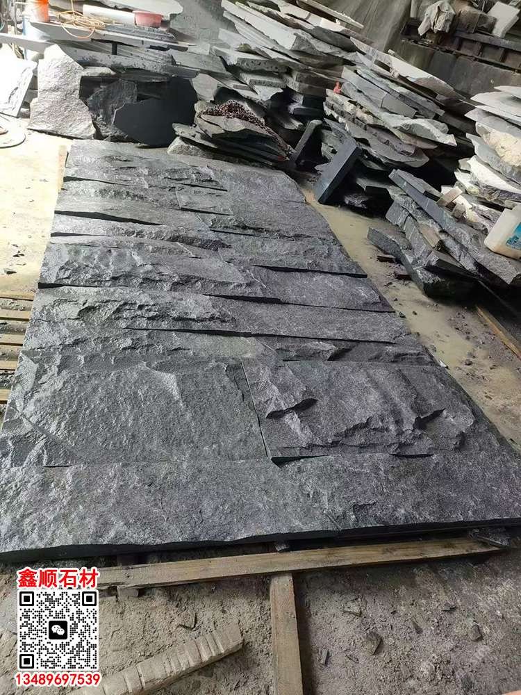 芝麻黑654石材自然面背景墙劈裂石石皮背景墙垒墙石