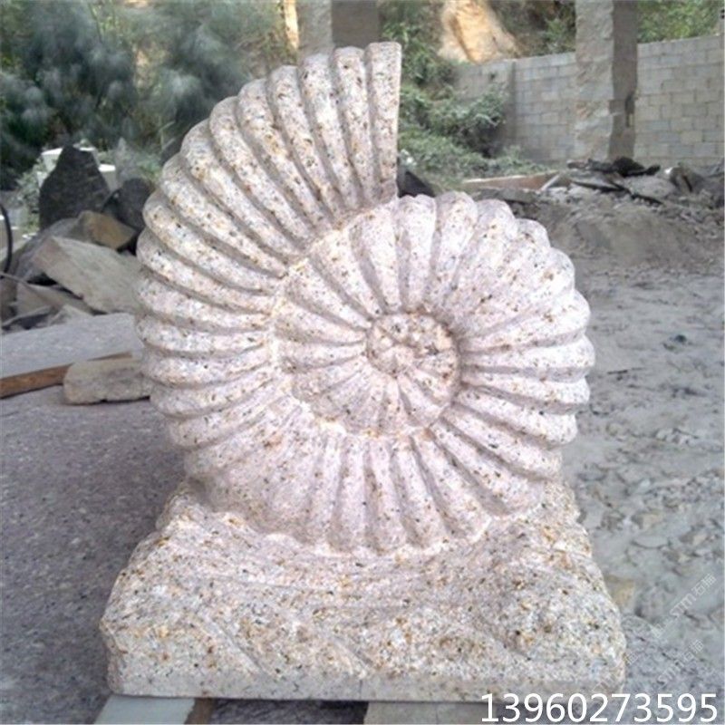 黄锈石海螺石雕广场喷泉装饰摆放
