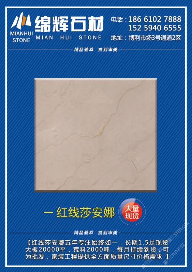 发布信息: 绵辉石材·石通天下E10区卖场 2800平《金欧典》6000平《红线莎安娜》限量特价90元起,工程单福利,清完为止,速来捡漏 咨询热线:13004819222李