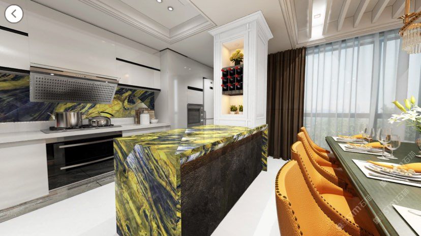 新景泰蓝透光板厨房案例/半宝石/奢石/蓝纹石透光板