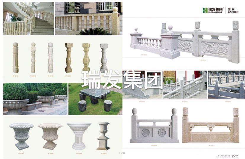 瑞发集团石材雕刻,旋转楼梯,圆柱,线条异形花盆栏杆
