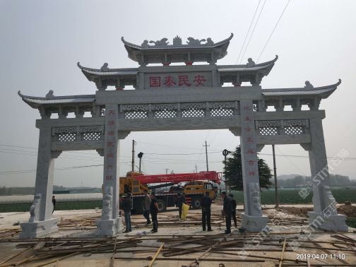 发布信息: 在如今大多数的村头、屯子安置的石牌坊来看,村头石牌坊制作多是简朴大方,比如常见的有一门冲天式牌坊、一门一楼牌坊、一门三楼牌坊、三门冲天式牌坊、三门三楼牌坊、三门五楼牌坊、三门七楼牌坊等